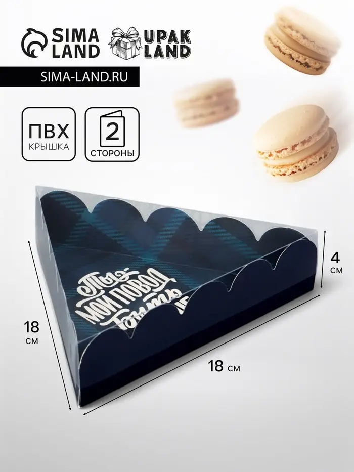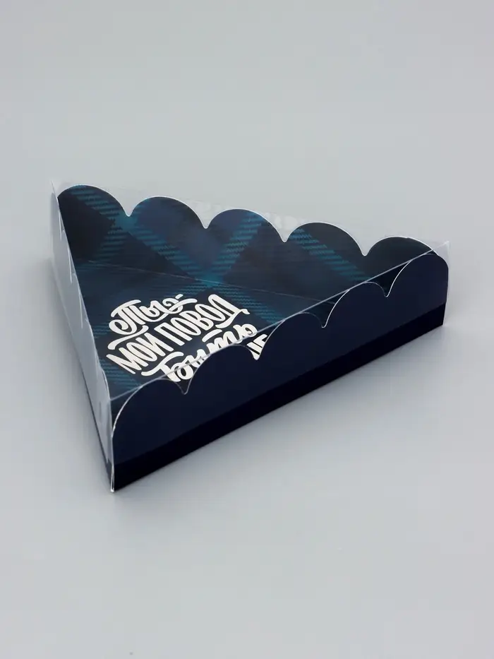 Прочный картон обеспечивает надежную защиту содержимого, а прозрачная крышка позволяет сразу оценить внешний вид угощений без необходимости открывать коробку.