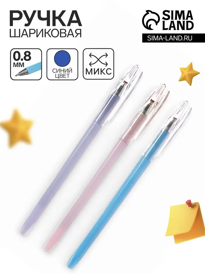 Ручка шариковая 0.8 мм, стержень синий на масляной основе, МИКС