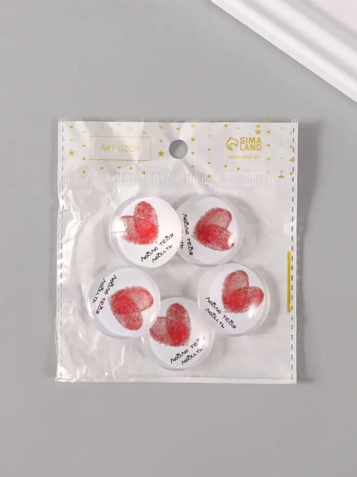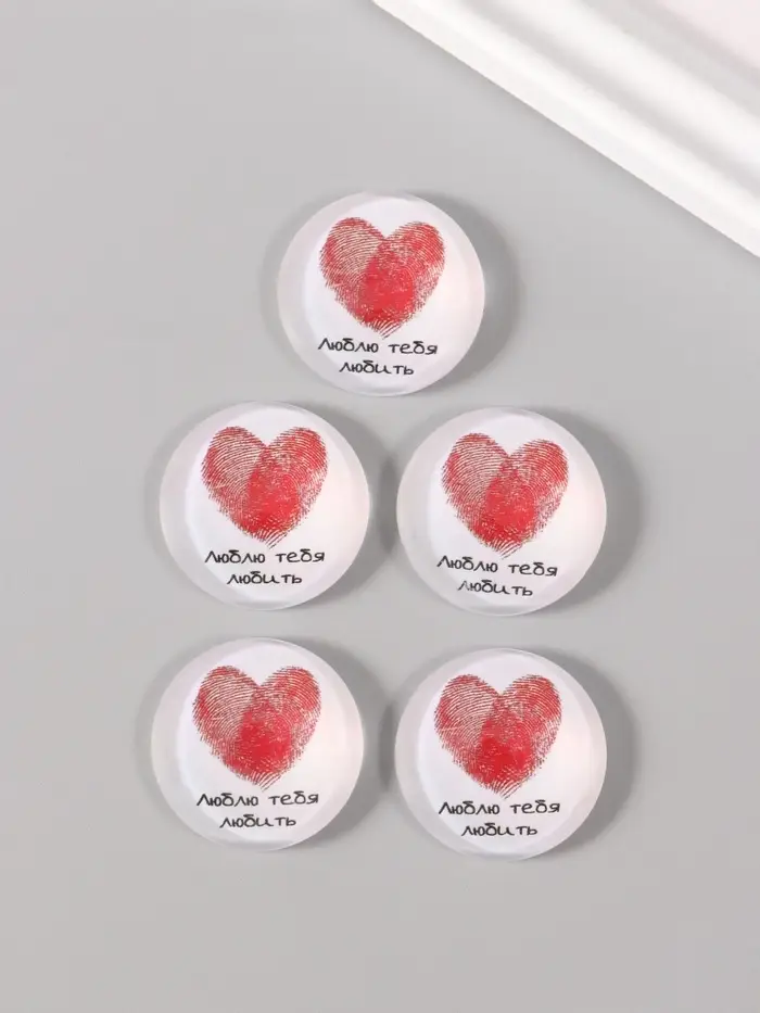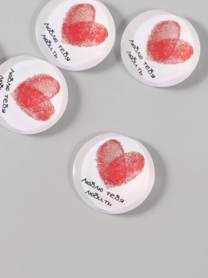 Кабошон стекло для творчества "Круг. Сердце отпечатки" 3х3 см