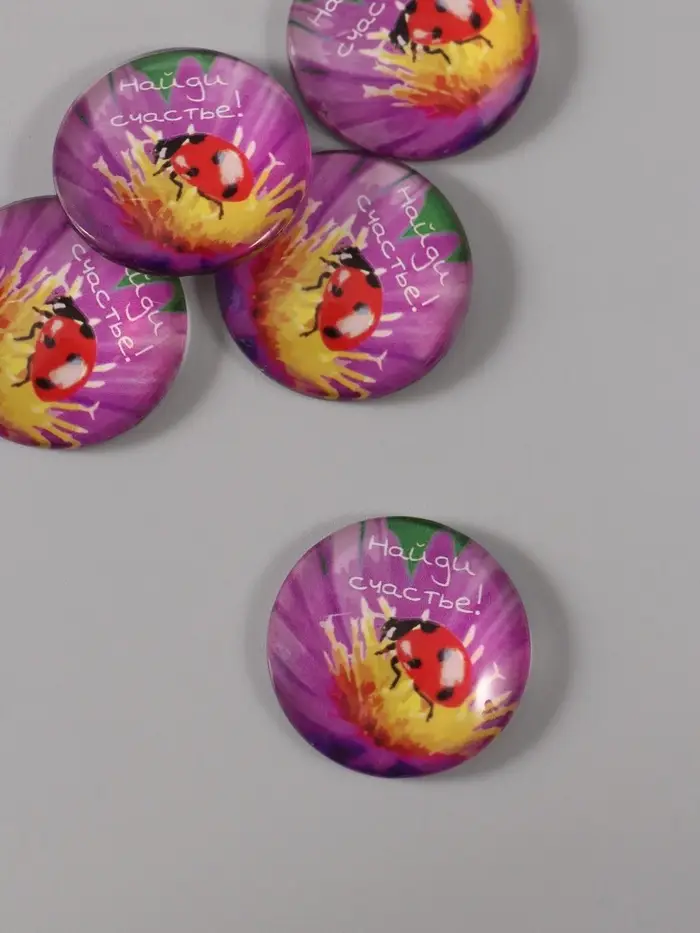 Кабошон стекло для творчества "Круг. Найди счастье!" 3х3 см