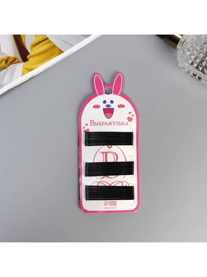Невидимка для волос «Глория», набор 24 шт., зайка, 5.5 см, чёрная