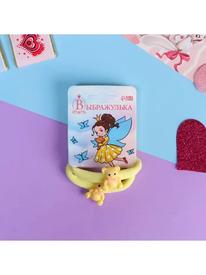 Резинка для волос «Маленькая радость», набор 2 шт., мишка, 3.5 см, жёлтая