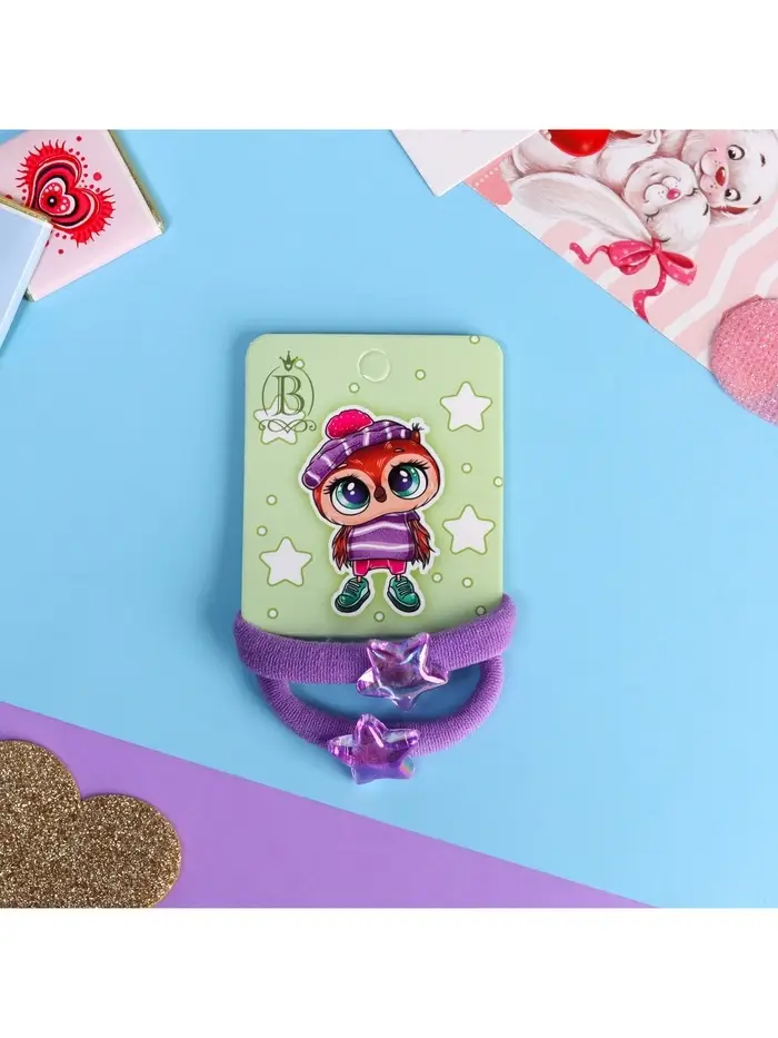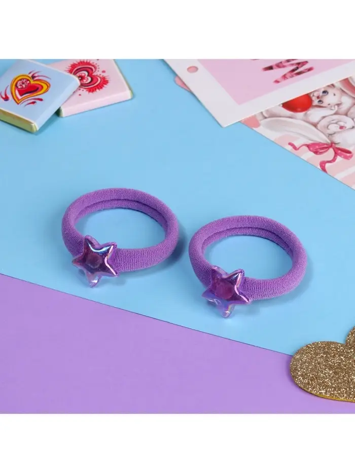 Резинка для волос «Мелодия», набор 2 шт., звезда, 3.5 см, сиреневая