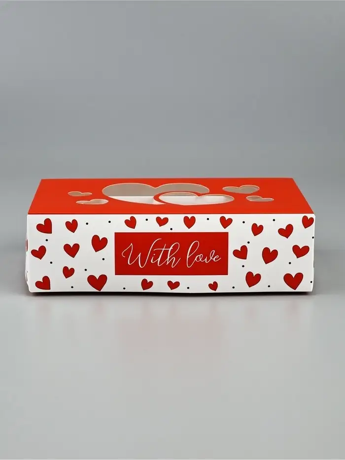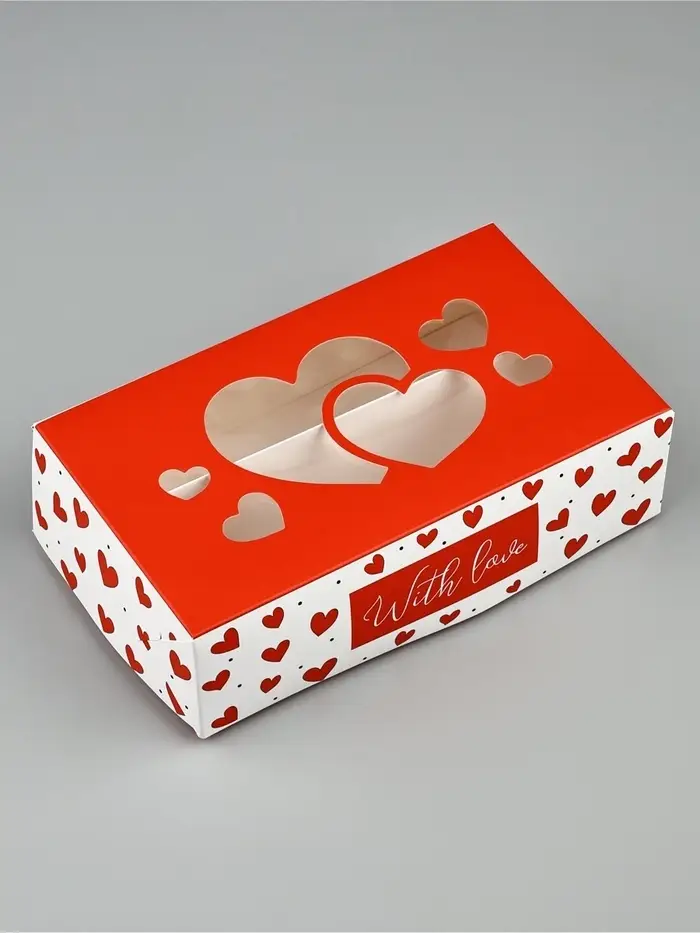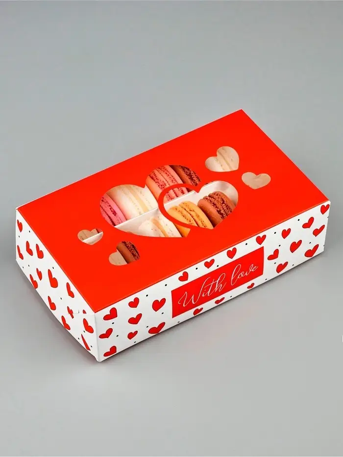 Кондитерская упаковка для макарун с окном, «С любовью», 11 х 19 х 5.5 см