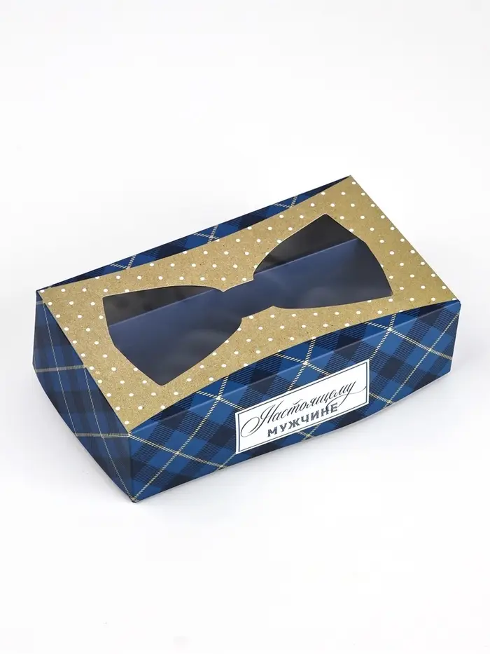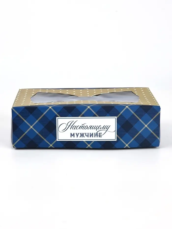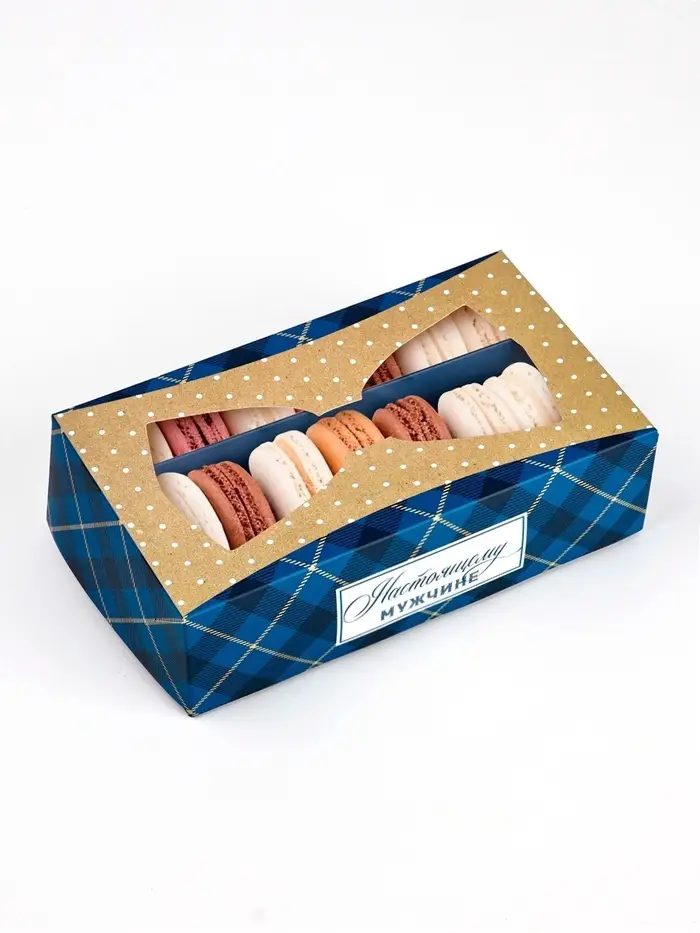Кондитерская упаковка для макарун с окном, «Настоящему мужчине», 11 х 19 х 5.5 см