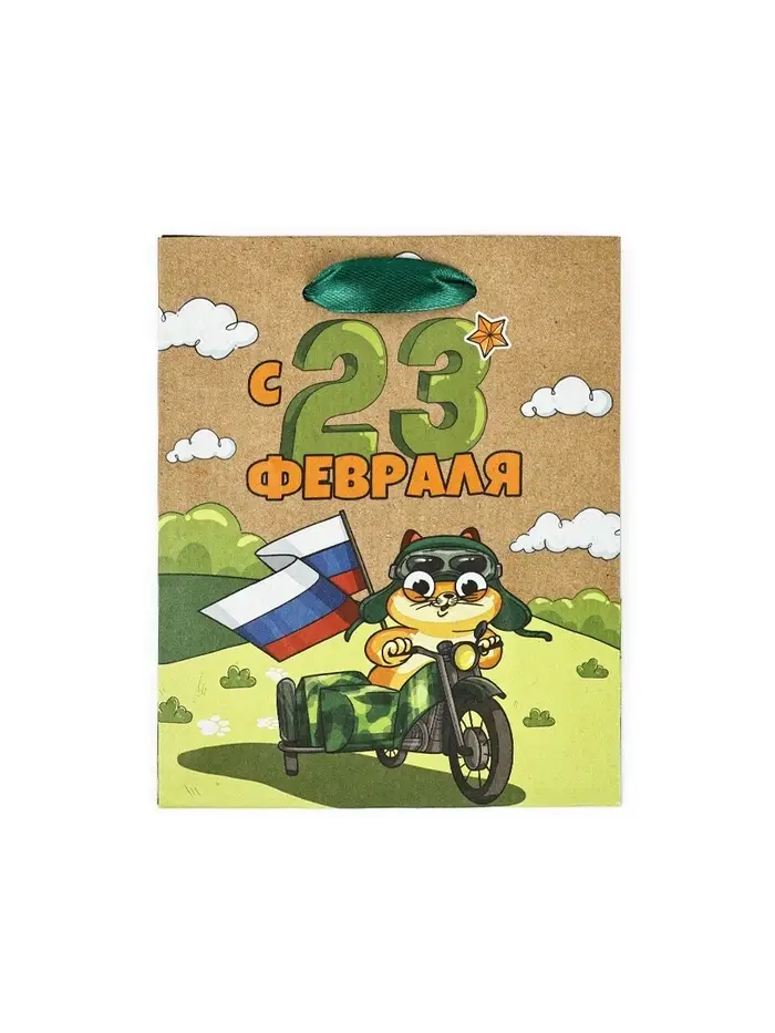 Пакет подарочный крафтовый «23 февраля», S 12 х 5.5 х 15 см