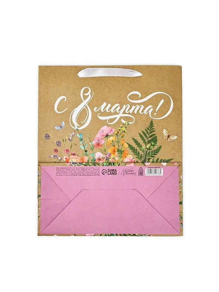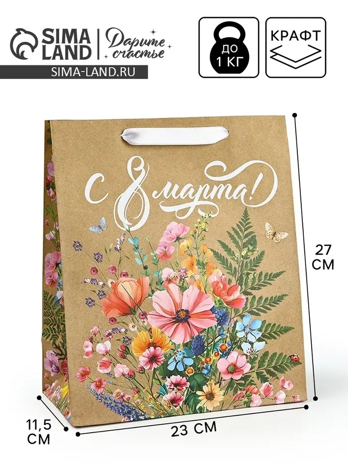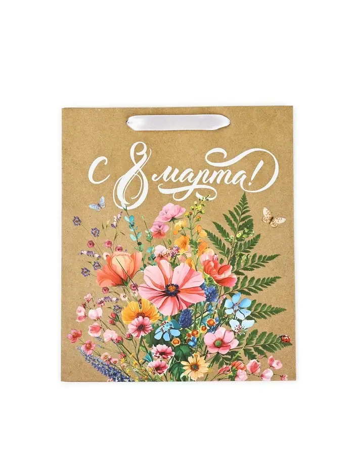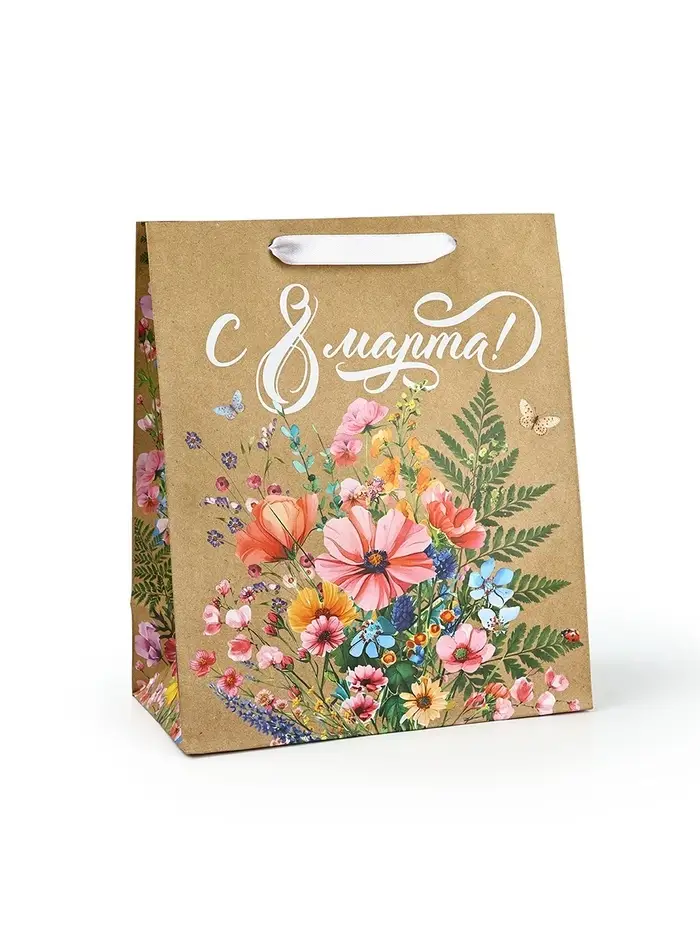 Пакет подарочный крафтовый «8 марта», ML 23 х 11.5 х 27 см