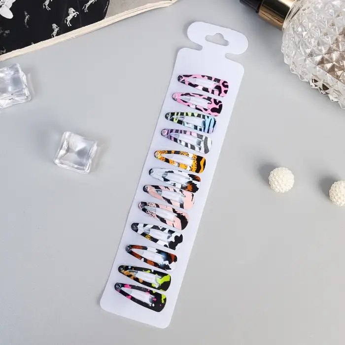 Невидимка для волос «Камилла», набор 12 шт., принт пятна, 3 см, МИКС