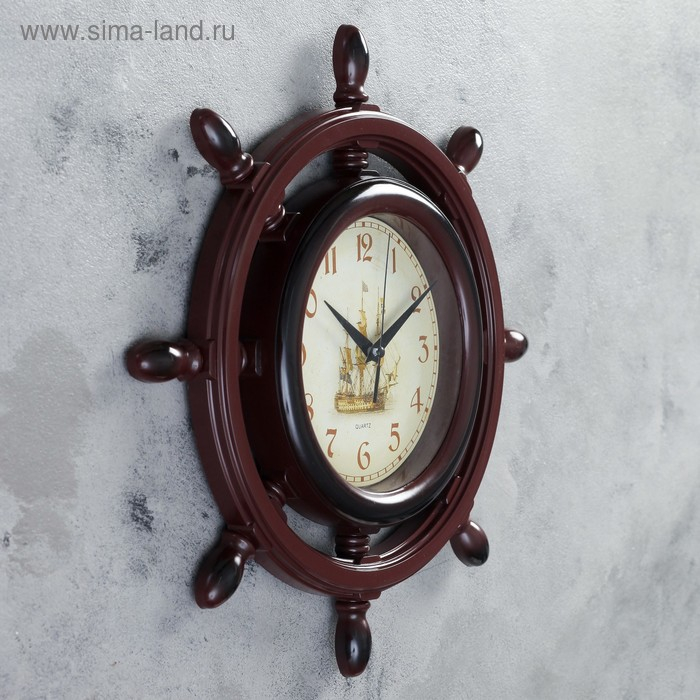 Часы настенные, серия: Море, "Штурвал", плавный ход, d-35 см, коричневая патина