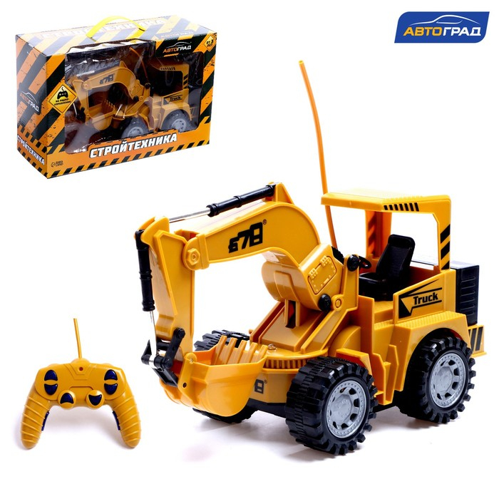 Радиоуправляемый экскаватор «Строитель» — незаменимая техника в гараже каждого юного строителя. Она оборудована ковшом для перевозки крупных и тяжелых грузов. С такой техникой ребёнок быстро возведёт новое здание!