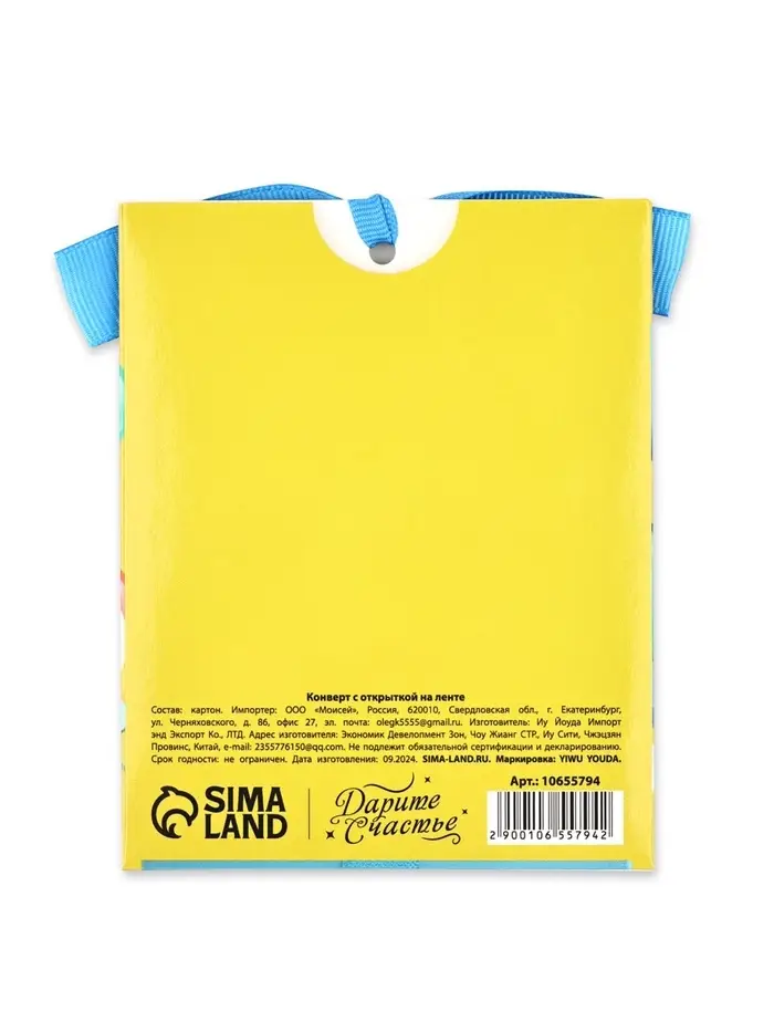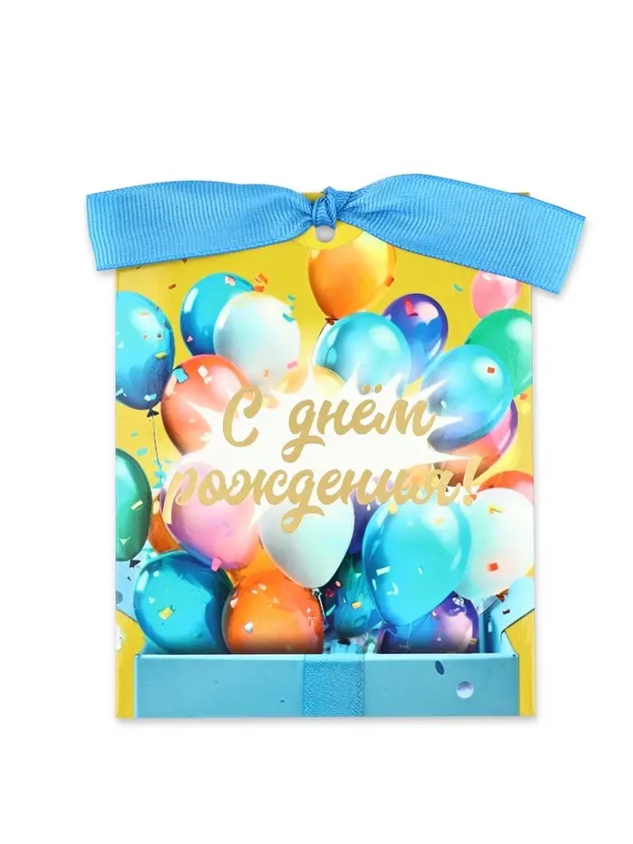 Открытка с конвертом на ленте «С днём рождения!», тиснение, 10×12.5 см