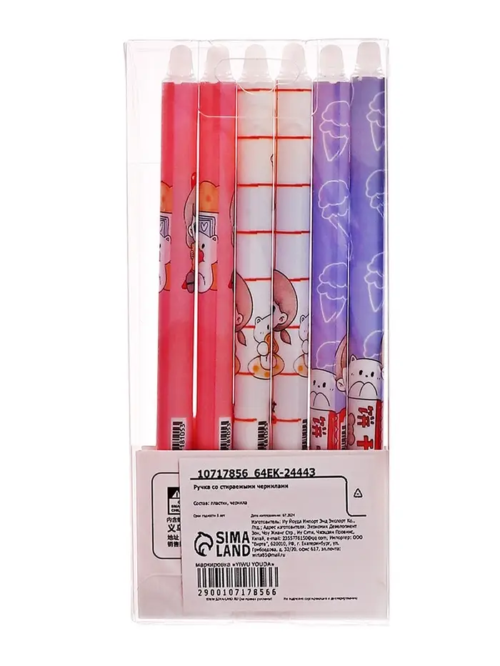 Ручка гелевая автомат СТИРАЕМЫЕ ЧЕРНИЛА, 0,5 мм, стержень синий, Милашка МИКС