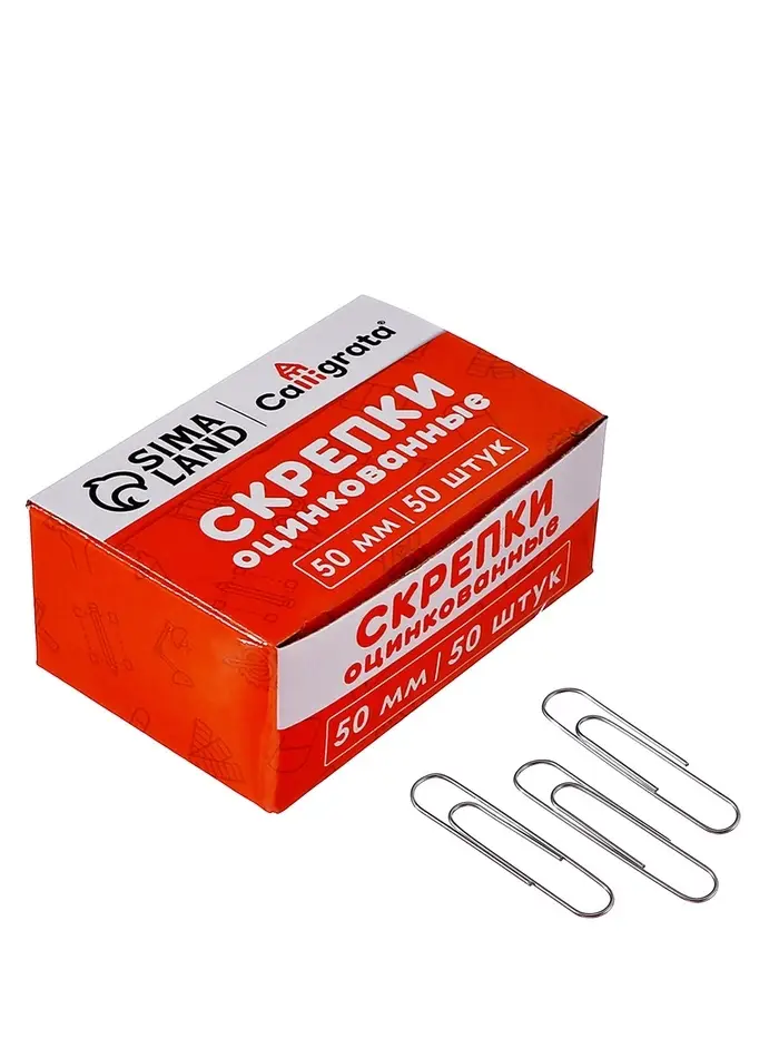 Скрепки 50мм оцинкованные в картонной коробке 50 штук