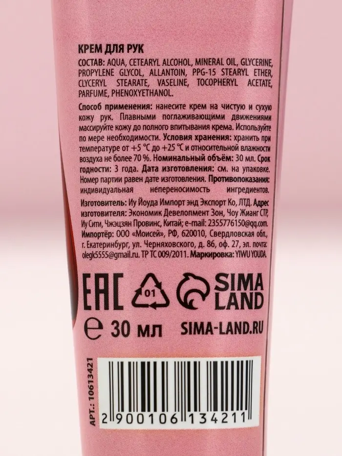Крем для рук увлажняющий, 30 мл, нежная забота, Чистое счастье