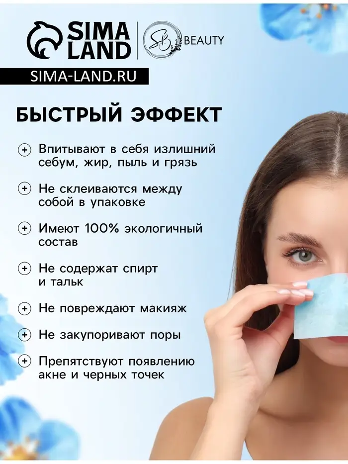 Матирующие салфетки Secret Beauty, 50 шт., синие