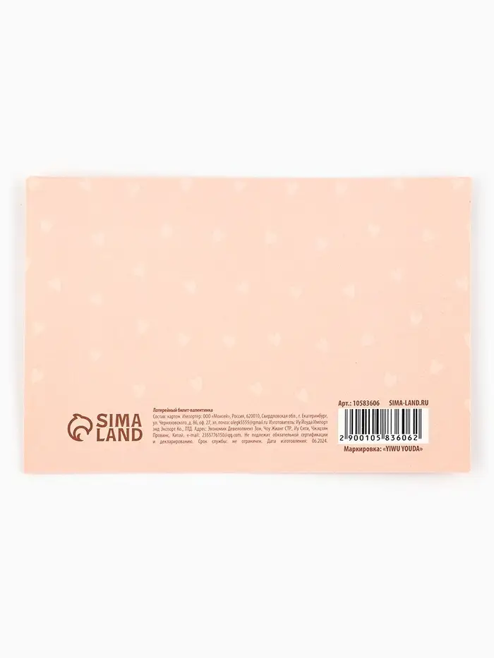 Открытка, лотерейный билет «Моя любовь бесконечна», 10×15 см