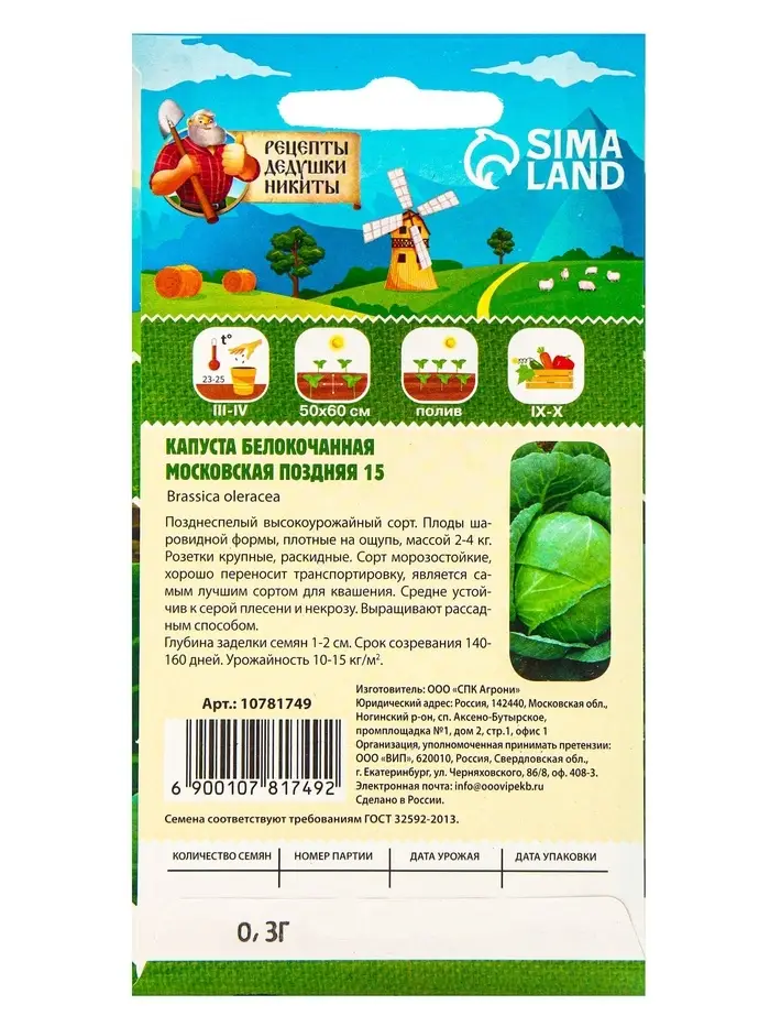 «Московская поздняя 15» — это надёжный выбор для тех, кто ценит качество, простоту и стабильный результат. Вы получите богатый урожай, который порадует вас своим вкусом и долгим сроком хранения. Не упустите возможность вырастить свою собственную экологически чистую капусту, которая станет основой для ваших любимых блюд. Закажите семена прямо сейчас и обеспечьте себя качественным продуктом на весь сезон!