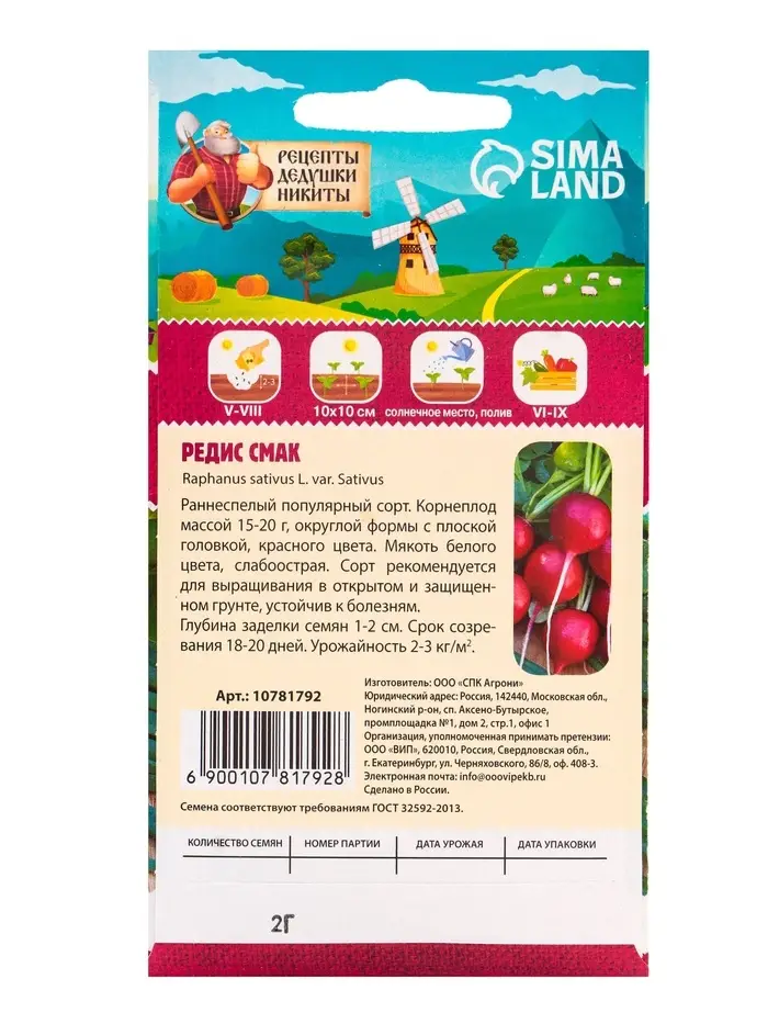 Представьте, как легко и приятно будет вырастить свой собственный урожай редиса Смак. Этот сорт — надежное решение для тех, кто ценит качество, простоту и экономичность. Вкусные, сочные корнеплоды станут гордостью вашего огорода и украшением семейных обедов. Не упустите возможность получить богатый урожай уже в начале сезона! Закажите семена редиса Смак прямо сейчас и сделайте первый шаг к здоровому и полезному питанию!