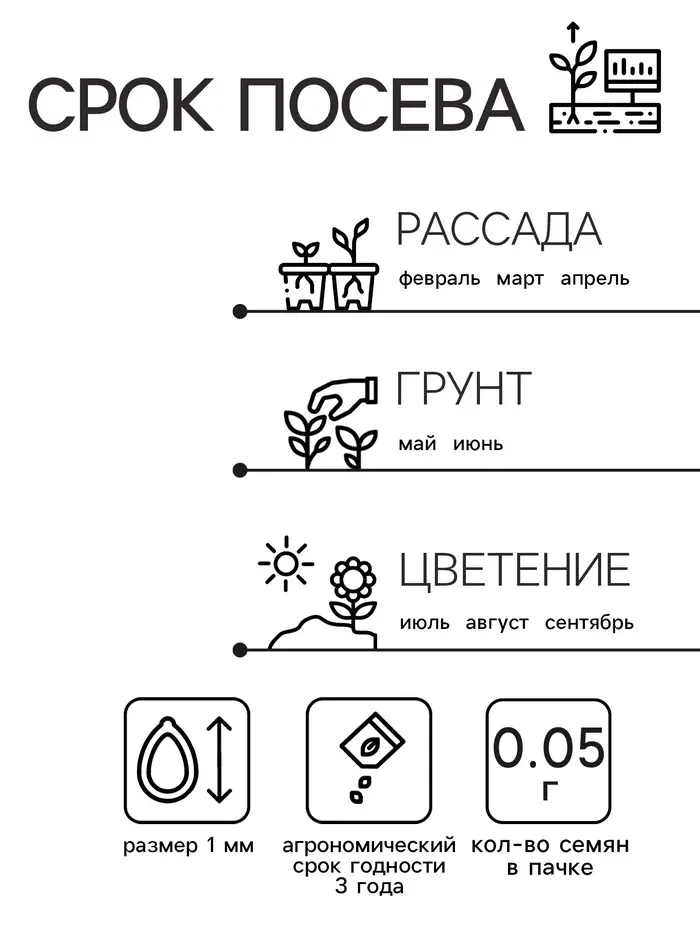 - Компактный размер упаковки (всего 0,05 г) позволяет легко хранить и использовать семена;