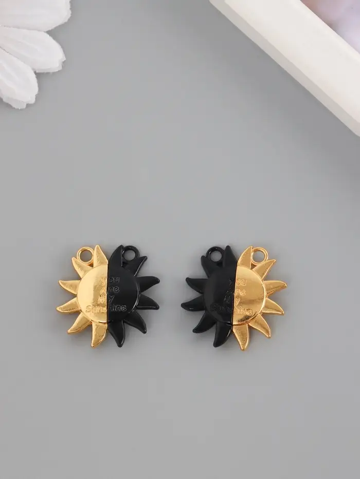 Замок магнитный металл "Солнце" набор 2 шт чёрно-золотой 2,7х2,6 см