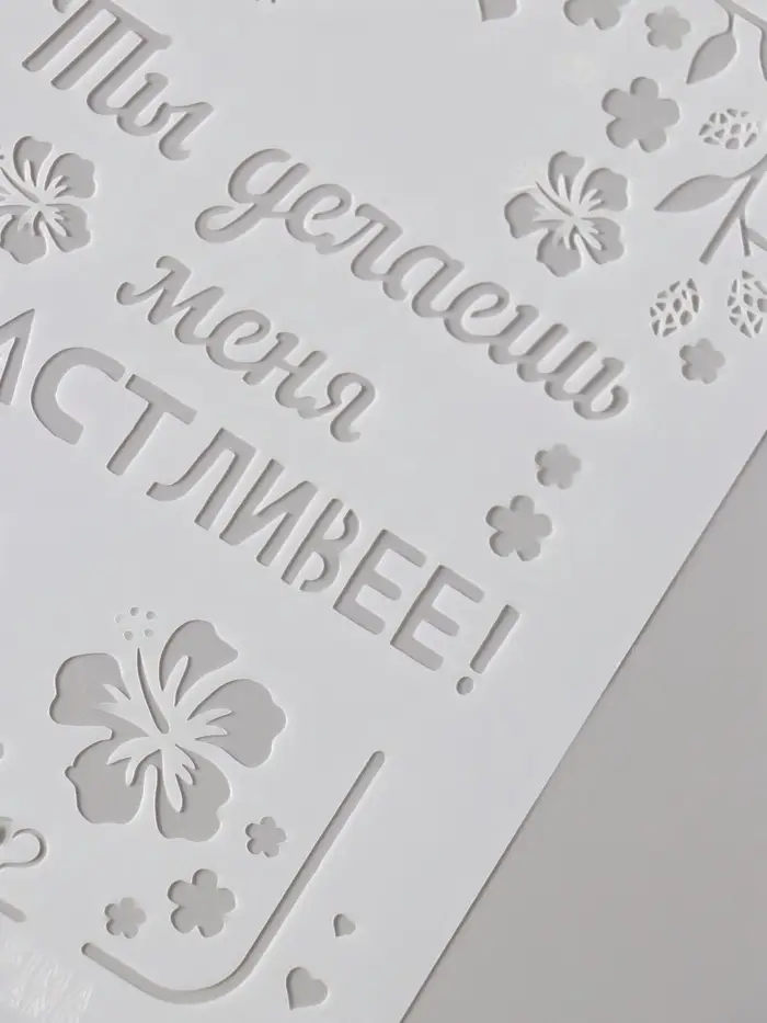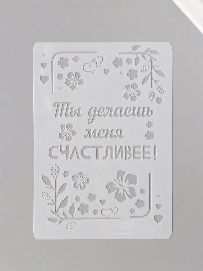 Трафарет пластик А5 "Листья. Ты делаешь меня счастливее" 14,8х21 см