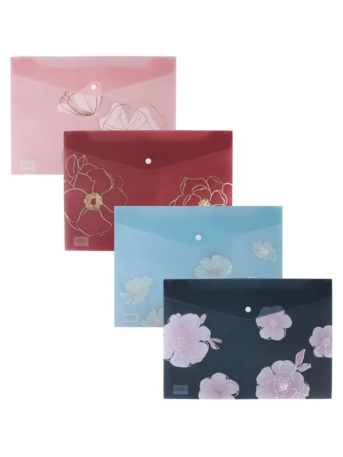Папка-конверт на кнопке формат А4 180мкр блестящая МИКС Цветы (штрихкод на штуке)