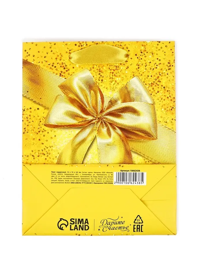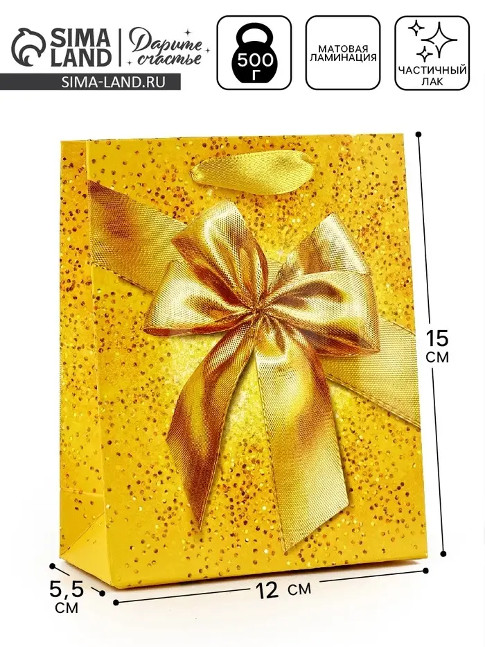 Пакет подарочный, упаковка, «Бант», частичный лак, S 12 х 15 х 5.5 см