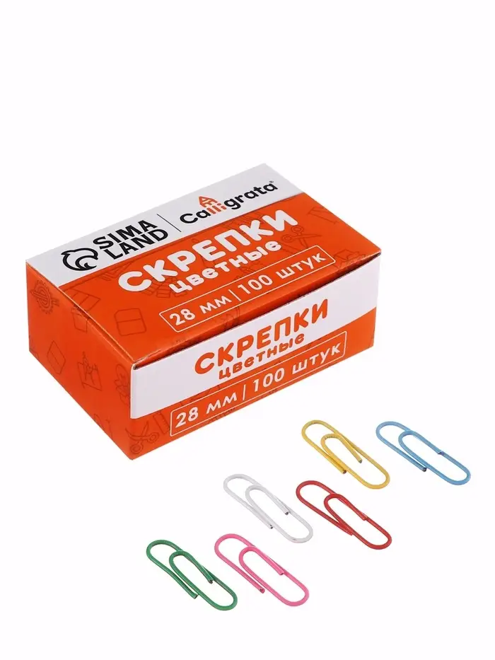Скрепки 28мм цветные в картонной коробке 100 штук
