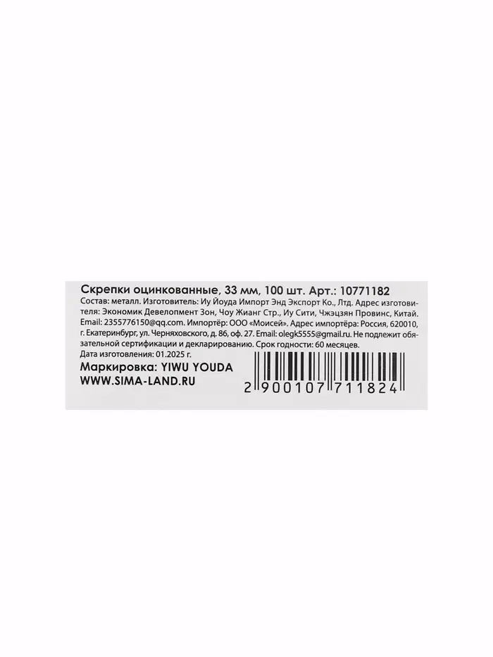 Скрепки 33мм оцинкованнные в картонной коробке 100 штук
