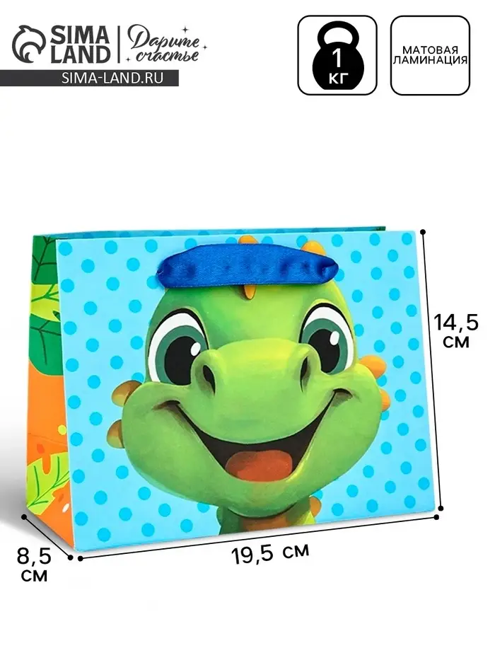 Пакет подарочный «Динозаврик», 19.5 х 14.5 х 8.5 см