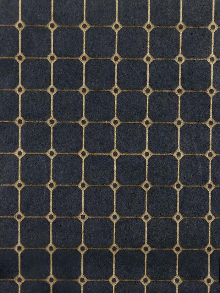 - Геометрический узор в виде клетки с золотистыми элементами создаёт роскошный образ.