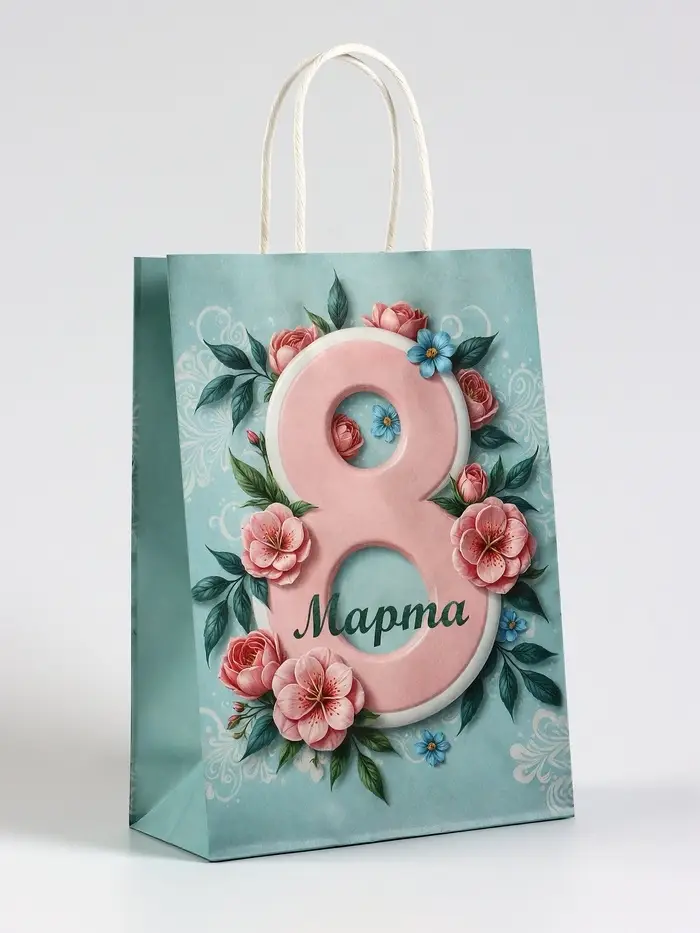 Пакет подарочный крафт, «8 Марта», 18×8×25 см
