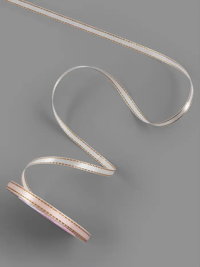 Сочетание мягкого лилового цвета с белыми вставками и мерцающего золотого люрекса придаёт ленте особый шарм. Ширина 6 мм делает её универсальной: она легко помещается в мелкие детали дизайна или становится ярким акцентом в больших композициях. Длина 23 метра позволяет воплотить масштабные проекты без необходимости соединять отрезки.