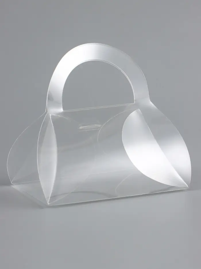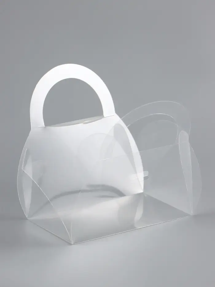 Миниатюрная складная коробка из прозрачного ПВХ в форме стильной сумки — универсальное решение для хранения и упаковки небольших подарков. Её компактный размер и оригинальный дизайн делают её идеальной для праздников, юбилеев или повседневного использования.