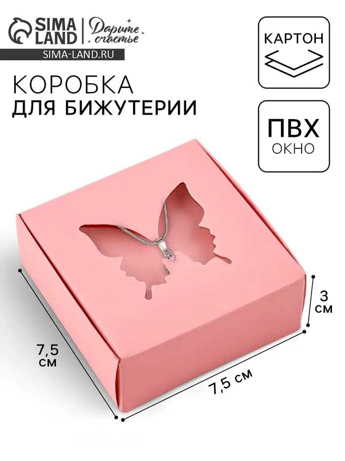 Коробка под бижутерию с окном «Бабочка», 7.5 х 7.5 х 3 см