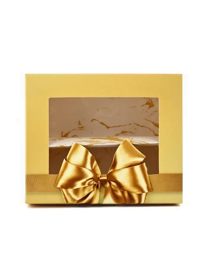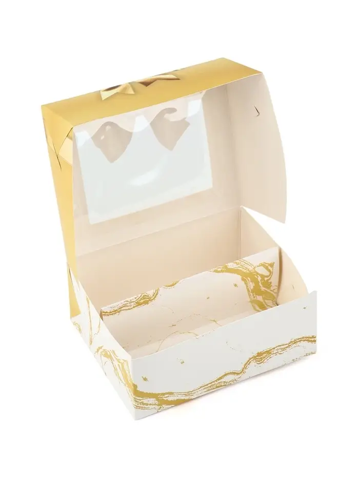 Кондитерская упаковка для макарун с окном, «Золотой бант», 11×13.5×5.5 см
