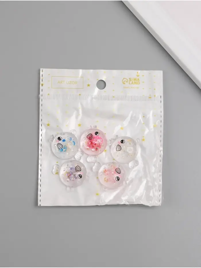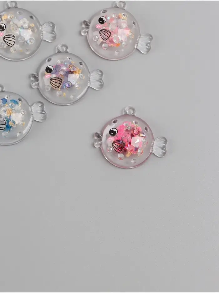 Подвеска для творчества акрил "Рыбка" с глиттером светится в темноте МИКС 2,6х3,1х1 см