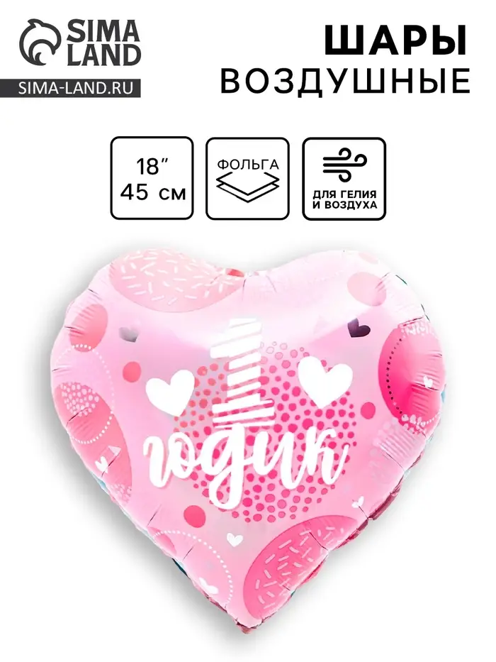 Воздушный шар фольгированный 18" «1 годик дочка», сердце