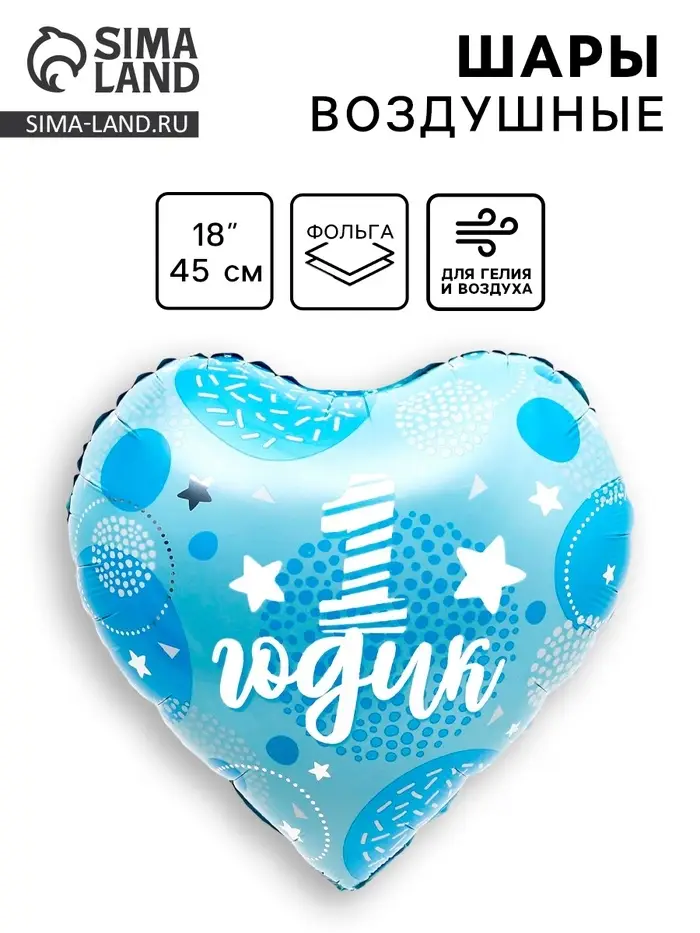 Воздушный шар фольгированный 18" «1 годик сынок», сердце