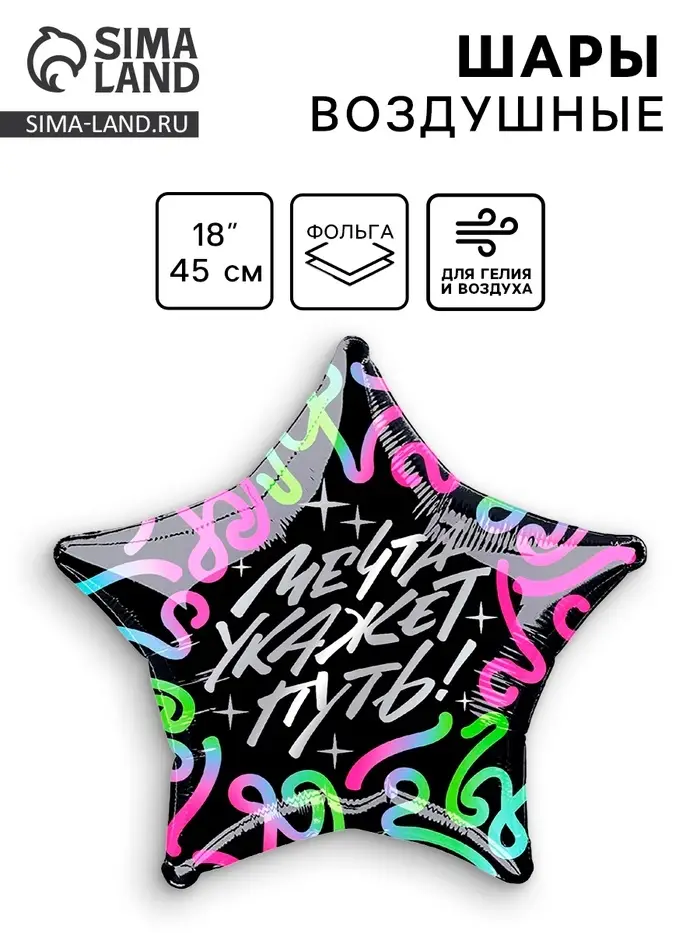Воздушный шар фольгированный 18" «Мечта укажет путь», звезда