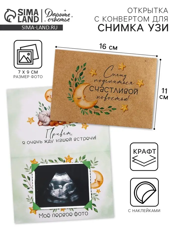 Открытка с конвертом для снимка УЗИ «Я беременна!», 11×16 см