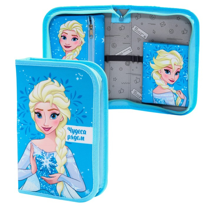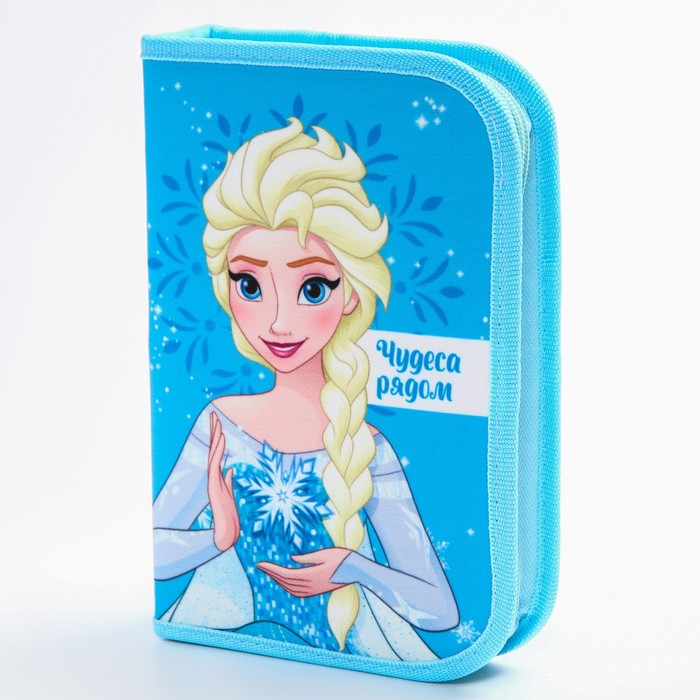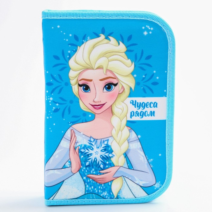 Пенал каркасный, 1 секция, 140х210х40 мм, откидной карман, тканевый, Холодное сердце