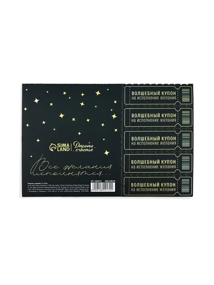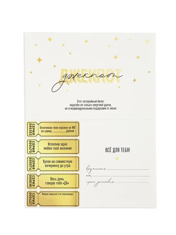 Открытка с купонами «Лотерейный билет», 12 х 18 см