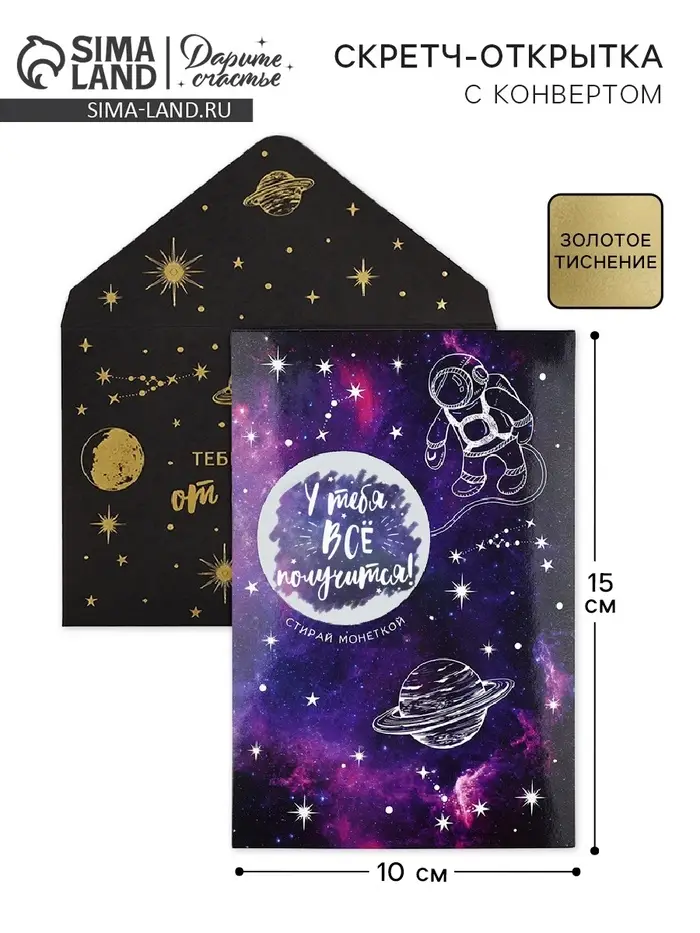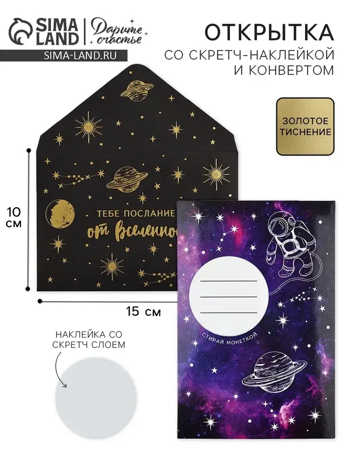 Конверт со скретч-наклейкой и открыткой «Послание», 10 х 15 см