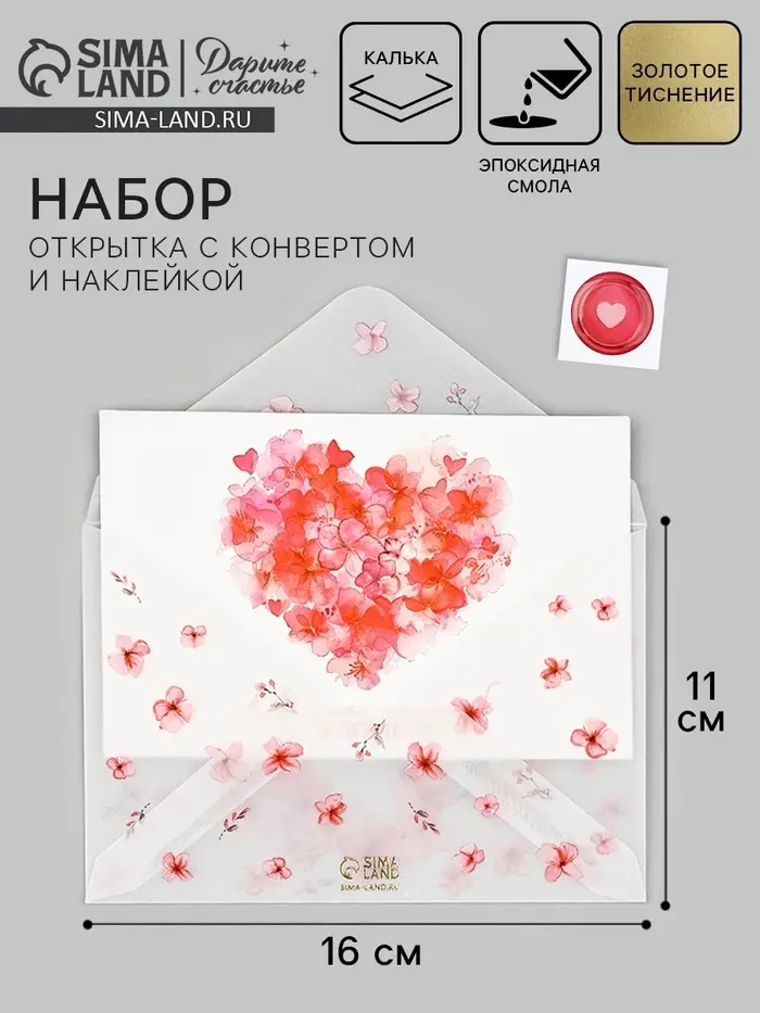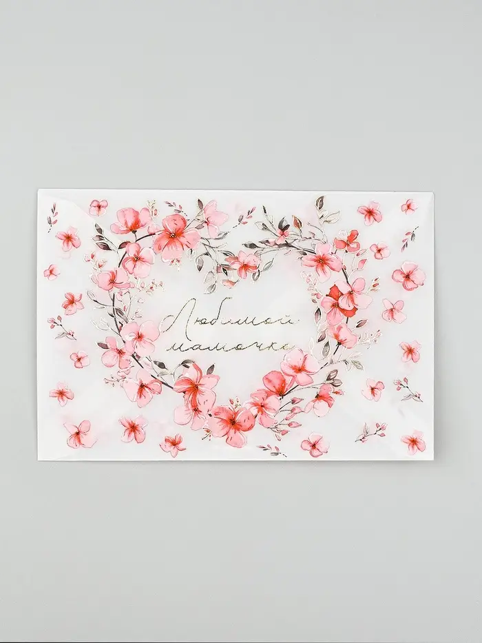 Открытка с конвертом и наклейкой «Мамочке», тиснение, 11 х 16 см