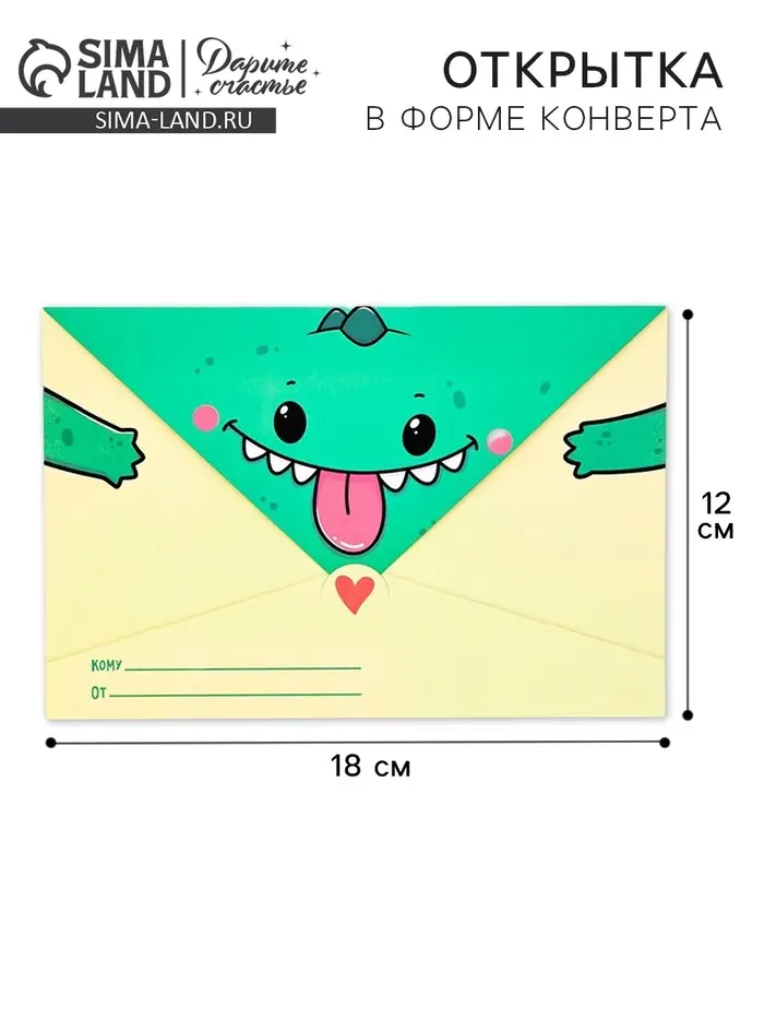 Открытка в форме конверта «Динозавр», 12 х 18 см