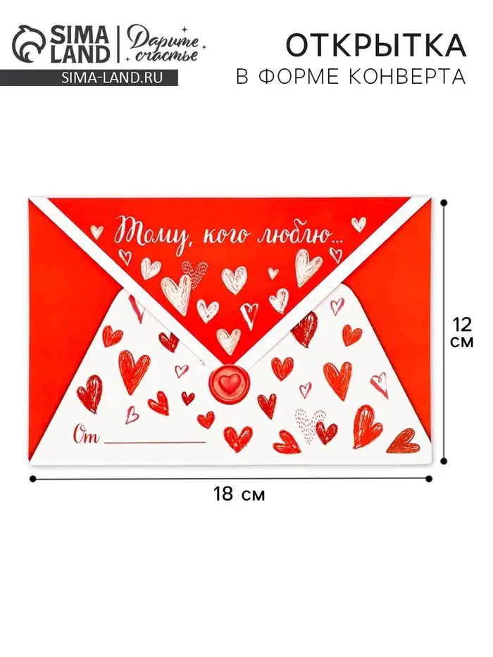 Открытка в форме конверта «Тому, кого люблю», 12 х 18 см