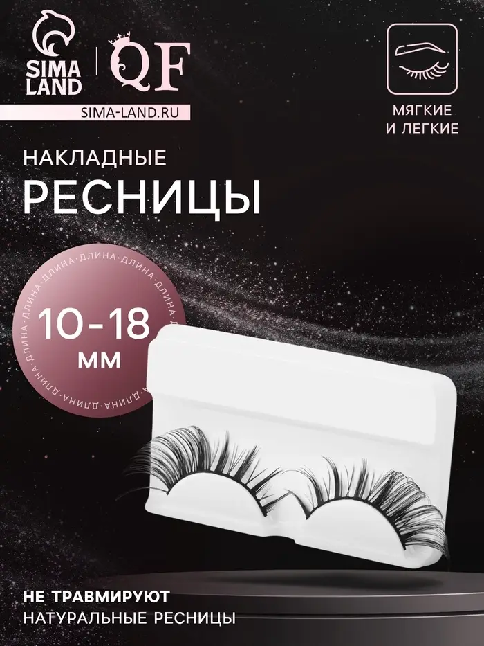 Черные накладные ресницы — идеальное решение для создания выразительного макияжа без лишних усилий. Их длина от 10 до 18 мм позволяет экспериментировать с образом, от естественного до яркого. В упаковке два комплекта ресниц на ленте, изготовленных из нейлона, что гарантирует комфорт и долговечность.