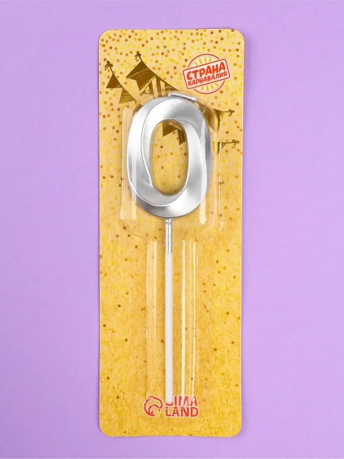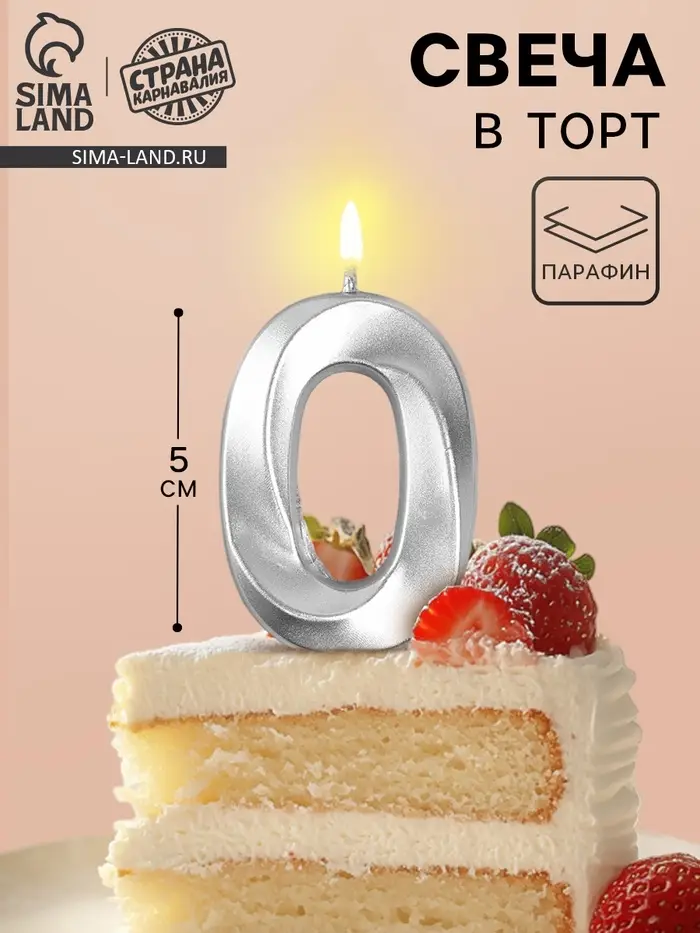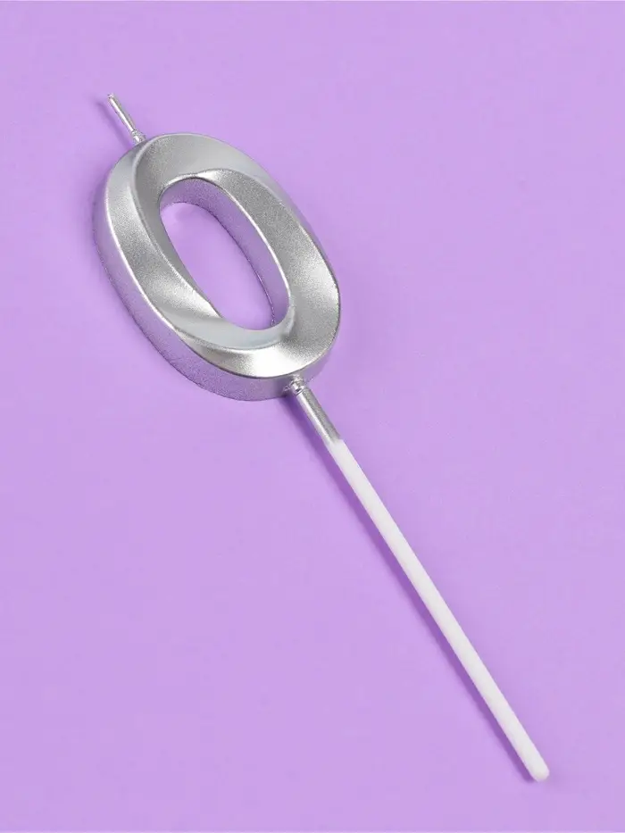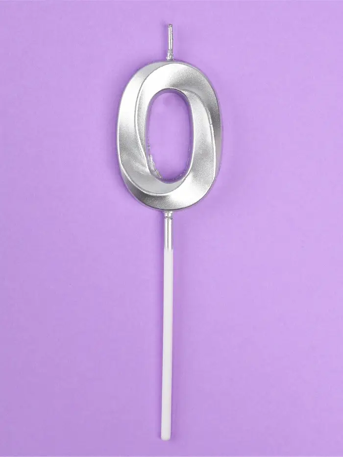 Свеча в торт на шпажке «Грань», цифра 0, серебро, 5 см