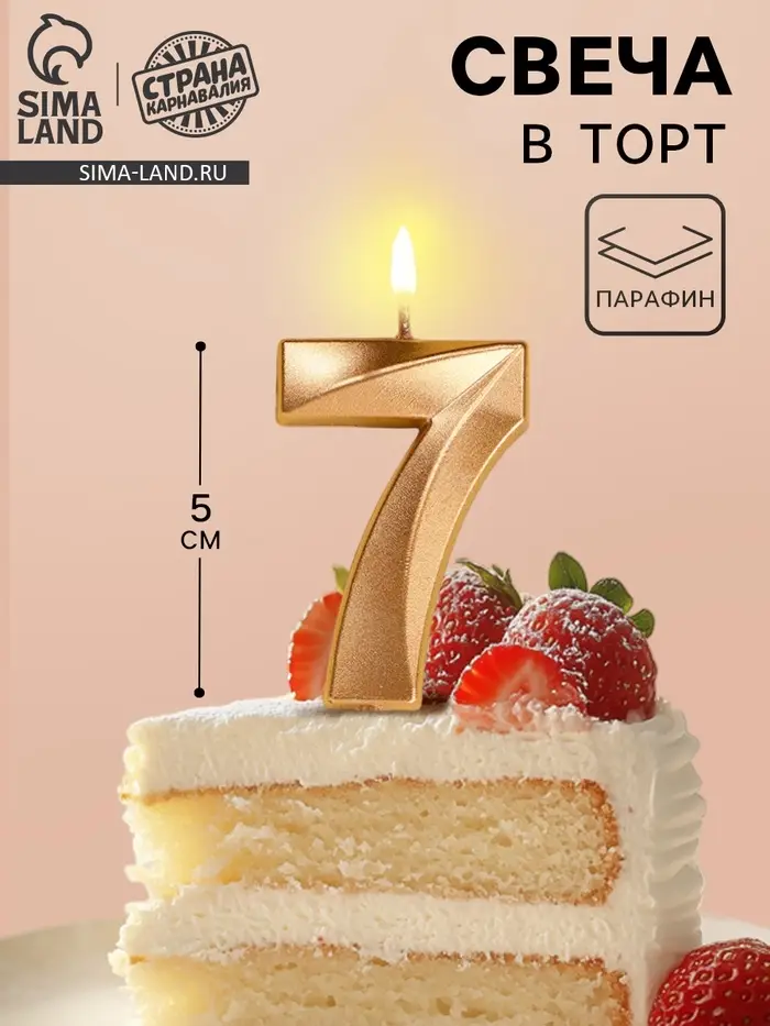 Свеча в торт на шпажке «Грань», цифра 7, шампань, 5 см